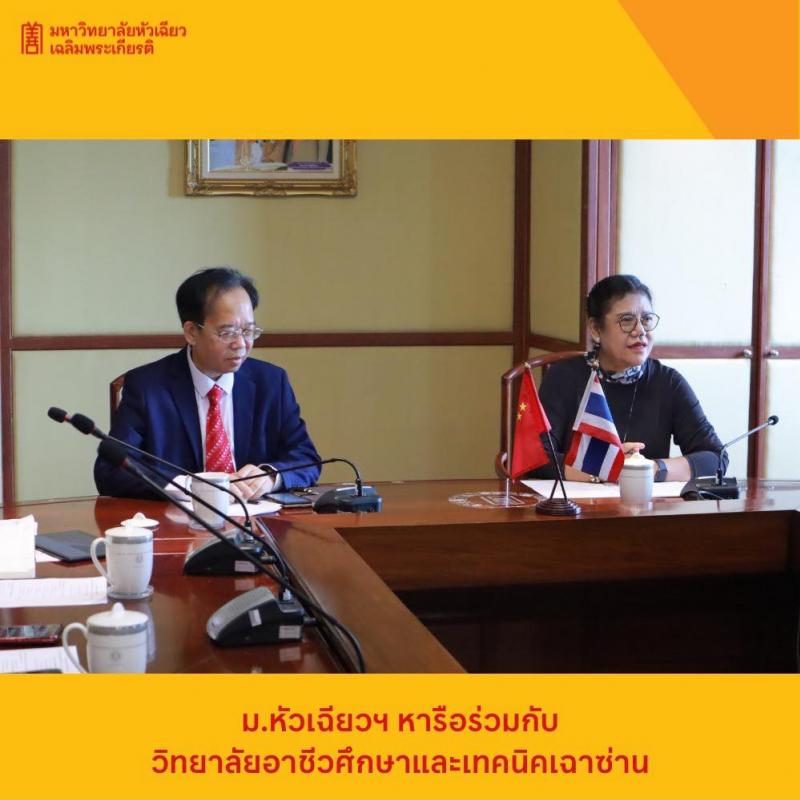มหาวิทยาลัยหัวเฉียวเฉลิมพระเกียรติ (มฉก.) ประชุมเจรจาความร่วมมือทางวิชาการกับวิทยาลัยอาชีวศึกษาและเทคนิคเฉาซ่าน (Chaoshan Vocational and Technology College) ประเทศสาธารณรัฐประชาชนจีน ในการนำ AI มาช่วยด้านการแพทย์โดยเฉพาะการแพทย์แผนจีน ด้าน Wellness และการวิจัย รวมถึงด้าน E-commerce โดยมี รศ.ดร.อุไรพรรณ เจนวาณิชยานนท์ อธิการบดีมหาวิทยาลัยหัวเฉียวเฉลิมพระเกียรติ (มฉก.) พร้อมด้วยรองอธิการบดี (อ.ดร.โจนาธาน รันเต คารียอน) ผศ.ดร.ธเนศ อิ่มสำราญ คณบดีวิทยาลัยจีนศึกษา อ.อรภา ศิลมัฐ คณบดีคณะการแพทย์แผนจีน อ.ดร.วิชุตา อยู่ยงค์ คณบดีคณะบริหารธุรกิจ ผู้ช่วยอธิการบดี (อ. Fang Wenguo) อ.Liu Yingying หัวหน้าแผนกวิเทศสัมพันธ์ อ.ดร.ปรีชยา ชูเงิน อาจารย์ประจำวิทยาลัยจีนศึกษา และนางสาวสุกัญญา จันทร์ศิริ นักวิชาการวิเทศสัมพันธ์ ให้การต้อนรับและร่วมประชุมหารือกับ คุณ Ji Shaoyou ประธานสภาวิทยาลัยอาชีวศึกษาและเทคนิคเฉาซ่าน คุณ Wei Yu ที่ปรึกษาประธานสภาวิทยาลัยอาชีวศึกษาและเทคนิคเฉาซ่าน คุณ Li Xiaoya ประธานสภาบริษัทเทคโนโลยีเฉาต้าหยูนเจิ่น คุณ Lv Yunhui ผู้จัดการใหญ่บริษัทเทคโนโลยีเฉาต้าหยูนเจิ่น และคุณ Lin Shaohua ผู้ช่วยคณบดีคณะผู้ประกอบการ เมื่อวันจันทร์ที่ 21 เมษายน 2568 ณ ห้องประชุม ชั้น 4 อาคารอำนวยการ มฉก.