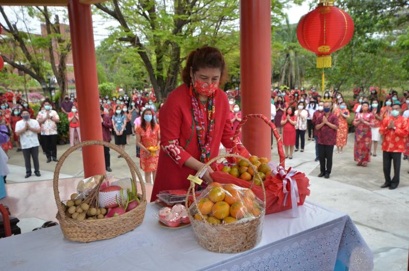ตรุษจีน ม.หัวเฉียวฯ ประจำปี 2564 รองศาสตราจารย์ ดร.อุไรพรรณ เจนวาณิชยานนท์ อธิการบดีมหาวิทยาลัยหัวเฉียวเฉลิมพระเกียรติ (มฉก.) พร้อมด้วยรองอธิการบดีทั้ง 4 ท่าน ได้แก่ รองศาสตราจารย์อิสยา จันทร์วิทยานุชิต อาจารย์ ดร.ศิริวรรณ ตันตระวาณิชย์ อาจารย์ฉลอง แขวงอินทร์ และท่านคณบดี ผู้อำนวยการ เจ้าหน้าที่ นักศึกษา ร่วมสักการะสิ่งศักดิ์สิทธิ์เพื่อความเป็นศิริมงคลเนื่องในวันตรุษจีน ประจำปี 2564 เมื่อวันที่ 10 กุมภาพันธ์ 2564 ณ ศาลาไทย ศาลาหลวงปู่ไต้ฮง ศาลพระภูมิ ศาลเจ้าที่ ศาลตายาย มฉก. 1 และ มฉก. 2