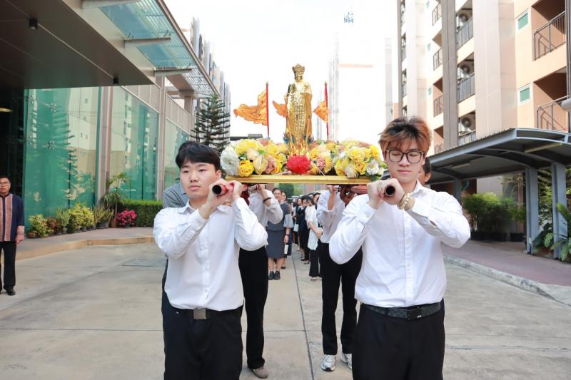 มหาวิทยาลัยหัวเฉียวเฉลิมพระเกียรติ (มฉก.) จัดพิธีแห่และประดิษฐานหลวงปู่ไต้ฮง ณ มฉก. 2 เมื่อวันพฤหัสบดีที่ 9 เมษายน 2569 เพื่อความเป็นสิริมงคลและเป็นศูนย์รวมจิตใจของบุคลากรและนักศึกษา โดยมี รศ.ดร.อุไรพรรณ เจนวาณิชยานนท์ อธิการบดี เป็นประธานในพิธี พร้อมด้วยผู้บริหาร อาจารย์ เจ้าหน้าที่ และนักศึกษา เข้าร่วมอย่างพร้อมเพรียงท่ามกลางบรรยากาศอบอุ่น เปี่ยมด้วยความศรัทธาและความประทับใจ